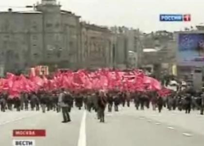 В2: Политически активные граждане разделились сегодня на колонны по идейным убеждениям. Коммунисты и их соратники остались верны себе и прошли с красными флагами от Ленина на Калужской до Маркса на площади Революции.