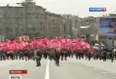 В2: Политически активные граждане разделились сегодня на колонны по идейным убеждениям. Коммунисты и их соратники остались верны себе и прошли с красными флагами от Ленина на Калужской до Маркса на площади Революции.