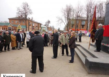 Киреевск. У памятника В.И.Ленину на площади перед районным Дворцом культуры собрались около 40 человек. Секретарь Киреевского райкома КПРФ Светлана Белоус открыла митинг и выступила перед собравшимися. Прозвучало выступление ветерана Великой Отечественной войны А.И. Тимофеева. Затем через громкоговоритель участники митинга прослушали аудиозапись поздравления с Днём международной солидарности трудящихся Председателя ЦК КПРФ, руководителя фракции коммунистов в Государственной Думе Г.А. Зюганова. Секретарь райкома выполнила приятную обязанность: вручила медаль «90 лет СССР» одному из партийных активистов, который не смог получить её 22 апреля. После митинга коммунисты прошли в Аллею Славы, где состоялась посадка деревьев, организованная секретарём райкома Светланой Белоус.