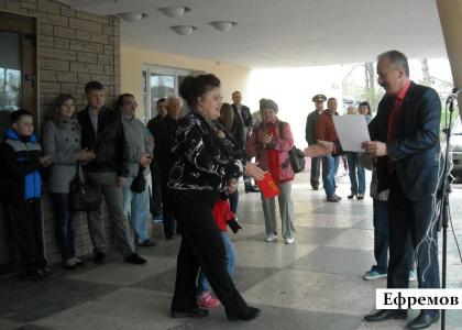 В течении часа выступающие – общественница Ольга Стародубцева, партийный активист, помощник депутата областной Думы Олега Веселова Сергей Молчанов, молодой коммунист, активист территориального общественного самоуправления Василий Семенов, депутат городского Собрания Валентина Коваленко, секретарь первичного отделения КПРФ Николай Карамалак, председатель Совета ветеранов Ефремовского завода синтетического каучука Нина Колесникова, секретарь горкома и депутат городского Собрания Алексей Пыршов говорили о насущных проблемах города, района, области, страны. В завершение митинга была принята резолюция. Когда дождь зарядил особенно сильно, люди переместились под козырёк ДК, где член бюро обкома и первый секретарь горкома КПРФ, депутат Тульской областной Думы Олег Веселов вручил почётные грамоты активистам. По окончании митинга состоялся небольшой концерт.