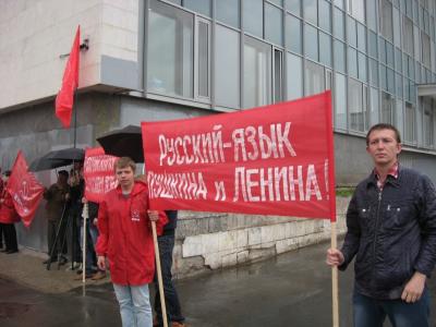 Несмотря на проливной дождь 5 июня у здания Законодательного Собрания Пермского края состоялся пикет, посвящённый Всероссийскому Дню русского языка - в защиту родной речи, родной русской культуры. Организованный Пермским краевым комитетом КПРФ, пикет развернул транспаранты с главными призывами и лозунгами акции.