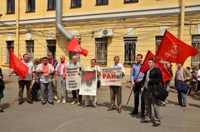 Участники митинга обратили внимание на красные флаги КПРФ и поблагодарили коммунистов за смелость и открытость, а также за поддержку в защите РАН. По результатам митинга единогласно было принято постановление.