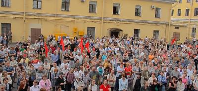 2 июля 2013 года на Университетской набережной в Санкт-Петербурге, у здания Академии наук прошел митинг, организованный профсоюзом работников Российской Академии наук в защиту Российской Академии наук (РАН)
