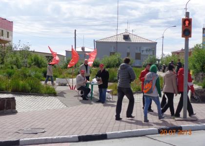 20 июля, в рамках Всероссийской акции протеста коммунисты Чукотки провели пикет в городе Анадырь по сбору подписей за отставку Правительства Медведева.