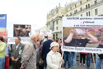 Митингующие, собравшиеся на площади Революции, держали в руках плакаты и лозунги: «Правительство Медведева – в отставку!», «Дети Великой Отечественной войны – дети Победы!», «Москвичи – за Мельникова!». А представители профсоюза Российской академии наук пришли с горькими, и, в то же время, ироничными лозунгами, например: «Просим укрепить руководство РАН. Сердюкова – в Президенты РАН! Васильеву – директором «Академсервиса».
