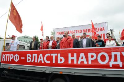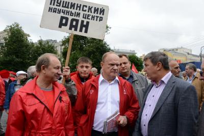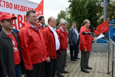 Участники акции потребовали: снять законопроект о реформировании РАН с рассмотрения в парламенте, принять закон о «детях войны», а также заморозить тарифы ЖКХ. Они призвали все слои общества поддержать инициативу об отставке правительства и антикризисную программу КПРФ. Также прозвучал призыв поддержать на выборах в Москве и Московской области кандидатов от Компартии И.И. Мельникова и К.Н. Черемисова.