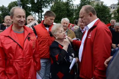 «Мы обязаны с вами все сделать для того, чтобы поддержать умных и талантливых людей, ибо иначе нам останется обслуживать только нефтегазовую трубу, карьер и лесоповал. Это удел рабов, а не талантливого народа, который за тысячу лет построил великую державу. Но своих вершин она достигла только во времена Советского Союза, который был светочем науки, великим победителем, открывателем новых миров, новых идей. Поэтому все, кто поддерживает наших кандидатов, голосуют за справедливость, за социализм за возрождение великой страны. Да здравствует Советская власть! Да здравствует Советский Союз! Да здравствуют наша наука и образование!» - так завершил свое выступление лидер КПРФ.