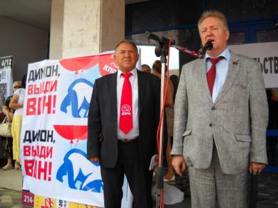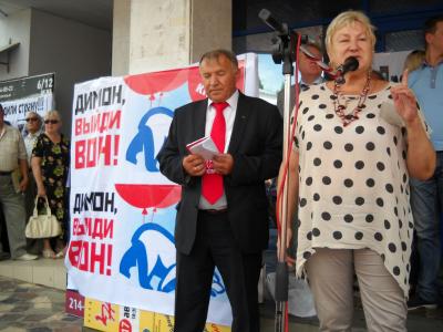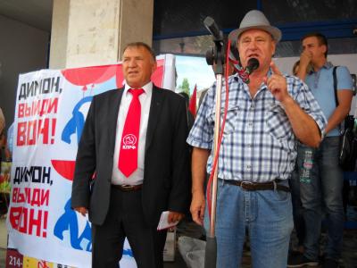 На митинге с яркими, эмоциональными словами выступил член Президиума ЦК КПРФ, секретарь ЦК КПРФ, депутат ГД ФС РФ С.П. Обухов. Он напомнил о ключевых требованиях 101 депутата Госдумы, высказанных ими в обосновании вотума недоверия правительству Медведева.
