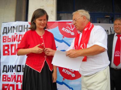 В 10 часов возле ДКЖД у памятника В.И. Ленину были установлена красная палатка КПРФ, в которой велся сбор подписей за отставку правительства Медведева, раздавались листовки и брошюры «10 причин для отставки правительства», активно распространялась газета правда.