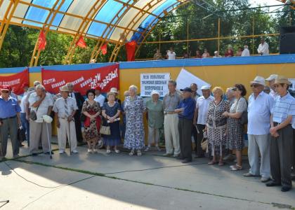 27 июля 2013 года, в рамках проведения Всероссийской акции под лозунгом «Детям войны - достойную жизнь», «Правительство в отставку», «Нет росту цен на ЖКХ» в г. Элиста на площади Победы состоялся митинг.