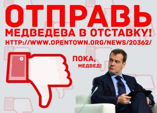 Подписаться за отставку правительства Медведева можно здесь: http://www.opentown.org/news/20362/