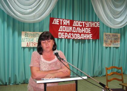 Точку в споре о выделенных на садик «миллионах» поставила Надежда Мошанская, председатель комитета администрации Бийского района по образованию и делам молодежи, которая также выступила на митинге. Сначала она продолжила заверять присутствующих, что детсад на 130 мест в Сростках будет сдан в эксплуатацию в 2014 году. Средства выделены и бумаги есть… Однако, на прямой вопрос из зала, на какой стадии все-таки находится ремонт или строительство детсада, председатель комитета администрации Бийского района по образованию и делам молодежи вынуждена была признать, что решение вопроса ремонта-строительства детсада зависит не от администрации района, а от администрации края: «Фактически разработана проектно-сметная документация, подготовлен пакет документов, чтобы выставить на конкурс. Мы ждем единственного момента — когда губернатор подпишет соответствующее распоряжение…Сделано абсолютно все, что от нас зависит… Денег нет – бумага не подписана!».