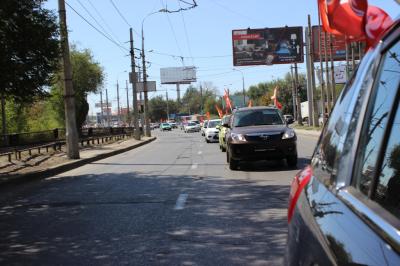 Колонна автомобилей сталинградских коммунистов проехала по центральным улицам города-героя.