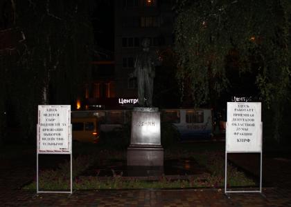 Борьба за право жить по Закону, Борьба за право выбора, за право голоса, за право быть гражданами, а не подъярёмным скотом!.. Днем и ночью, здесь, напротив Областной Администрации недалеко от здания суда (что символично) стоят люди, они не уйдут отсюда пока не будут выполнены их законные требования. Если же голос нашего протеста не будет услышан, мы проведем в Сталинграде многотысячный митинг и тогда «чиновничья «шайка» поймет, что сулит им народный гнев».