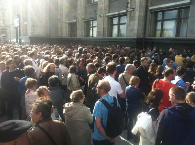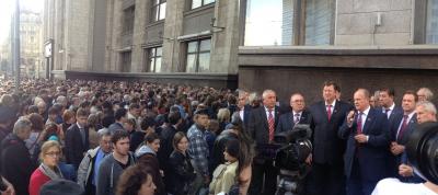 С 16.00 у здания Государственной Думы собралось несколько сотен человек для встречи с депутатами Госдумы от КПРФ . Через 10-15 минут у Думы уже собралось более 1000 человек.Перед избирателями уже выступили депутаты-коммунисты В.И.Кашин, Н.М.Харитонов, Б.С.Кашин, И.И.Никитчук.Люди прибывают. Выступления депутатов фракции КПРФ сопровождаются бурными аплодисментами.