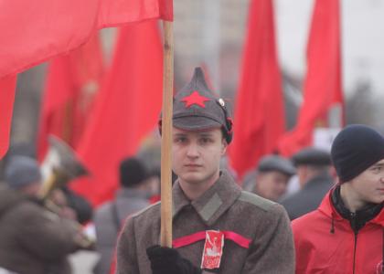 Омские коммунисты отметили 96-ю годовщину Великой Октябрьской социалистической революции шествием и митингом. Под музыку духового оркестра колонна прошла от Законодательного Собрания к памятнику В.И. Ленину. Во главе колонны в шинелях и буденовках шли комсомольцы с красными знаменами.