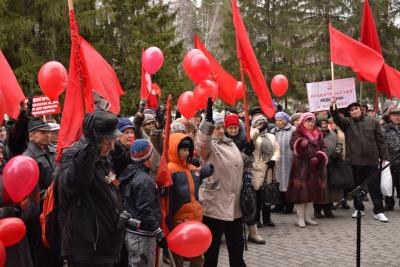С большим вниманием участники митинга выслушали выступление депутата Государственной Думы, первого секретаря Новосибирского обкома КПРФ Анатолия Локотя. Он поздравил присутствующих с праздником — 96-й годовщиной Великой Октябрьской социалистической революции.