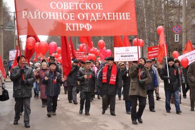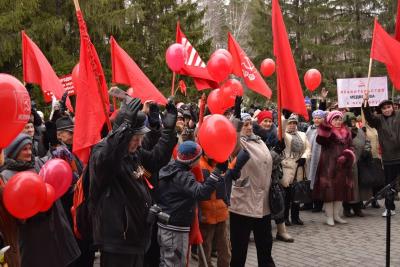 На фоне красок поздней осени добавился еще один цвет — красный. Алые полотнища знамен и флагов, красные воздушные шары с партийной символикой как-то по-особому подчеркивали происходящее, придавая ему торжественность и значимость. Сотни жителей, откликнувшись на призыв районного комитета КПРФ, пришли сегодня к зданию Президиума СО РАН, чтобы принять участие в ежегодном мероприятии – шествии и митинге, посвященных годовщине Великой Октябрьской социалистической Революции.