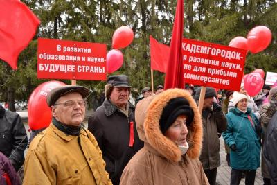 В этом году празднование 96-й годовщины Октября проходит для жителей научного центра в особой атмосфере. Предпринятая правительством попытка провести так называемую «реформу» Российской Академии наук встретила резкую критику и волну протестных действий не только со стороны научного сообщества, но и каждого здравомыслящего человека. Всем стало понятно, к каким катастрофическим последствиям для страны и науки приведет реформаторский зуд правительственных чиновников. И первые шаги, предпринятые ими после принятия в Государственной Думе соответствующего закона, подтверждают эти опасения. Образование только одного Агентства по управлению имуществом РАН чего стоит. Вот почему сегодня в руках у демонстрантов были не только красные флаги и шары, но и транспаранты и плакаты с требованиями прекратить уничтожение российской Академии наук, провести реформы, направленные на возрождение научного потенциала страны…