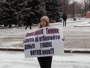 В этой связи Тюменское областное отделение ЛКСМ под руководством его первого секретаря Дмитрия Пивень организовало одиночный пикет против принятия такого бюджета. Комсомольцы также выступили в защиту ветеранов с лозунгом: «Депутаты, не отбирайте деньги у наших ветеранов». Проходившие мимо люди всецело поддерживали акцию комсомольцев и были благодарны за то, что комсомол и партия КПРФ в городе Тюмени защищают их интересы.