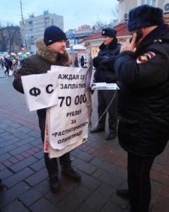 Активисты КПРФ прошли по проспекту Кирова от Крытого рынка до Консерватории. На протяжении всего маршрута акции протеста первый секретарь горкома КПРФ Александр Анидалов рассказывал горожанам, что на Олимпиаду в Сочи было затрачено в 10 раз больше денежных средств, чем на Олимпиаду в Ванкувере, и что можно было бы сделать на деньги, «распиленные» при проведении Олимпиады в Сочи: «Денег хватило бы, чтобы полностью перевооружить ВВС и ПВО страны! Сейчас у нас могут подняться в воздух только 250 боевых самолетов. За эти деньги мы могли бы тысячу сверхсовременных самолетов поставить на вооружение! 1/6 части потраченных денег хватило бы на то, чтобы полностью решить проблему нехватки детских садов в стране. Практически каждой российской семье Олимпиада обошлась в 70 000 рублей!».