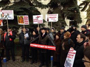 Во вторник, 4 марта у посольства Укрианы в Москве собрались предстапвитеди КПРФ, чтобы выразить протест против бандеровского террора и узурпации власти в Киеве национал-фашистами.