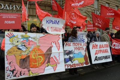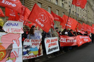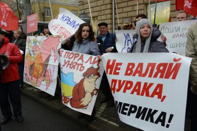 18 марта коммунисты провели пикет у посольства США в Москве. Цель акции, организованной Московским обкомом КПРФ, - выразить возмущение позицией Соединенных Штатов в связи с событиями на Украине.
