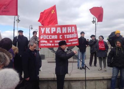Перед собравшимися выступил заместитель Председателя ЦК КПРФ, первый секретарь Московского городского комитета КПРФ В.Ф. Рашкин. Он отметил, что, несмотря на откровенное вмешательство в дела Украины США и стран Евросоюза, проводимую ими политику двойных стандартов, крымчане сделали свой выбор в пользу единства братских народов. Единодушие, показанное в ходе референдума, доказывает силу исторических связей земель, бывших еще недавно частями единого государства. Схожие тенденции мы видим и в других областях юго-восточной Украины. «Процесс восстановления СССР запущен!», - сделал заключение Валерий Федорович.