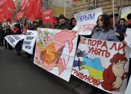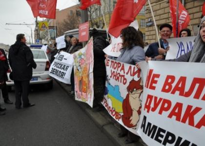 18 марта у посольства США на Новинском бульваре Москвы состоялась акция протеста российской общественности против вмешательства США в события на Украине и в знак поддержки народа Крыма, который на референдуме 16 марта проголосовал за вхождение в состав России.