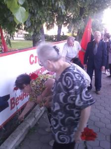 Кульминацией акции КПРФ стало восстановление растяжки со словами солидарности с украинскими братьями и скорби по жертвам фашизма, а также возложение к ней красных гвоздик.