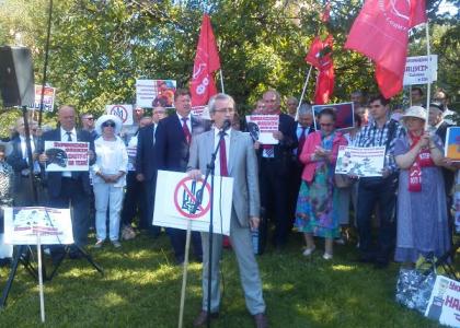 В завершение акции член ЦК КПРФ, депутат Госдумы А.В. Потапов зачитал текст резолюции с требованиями к руководству Германии, подготовленный для передачи работникам посольства ФРГ. Резолюция была принята единогласно.