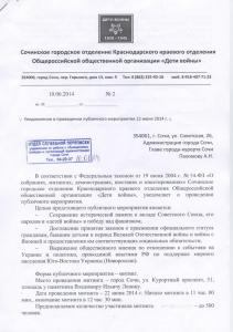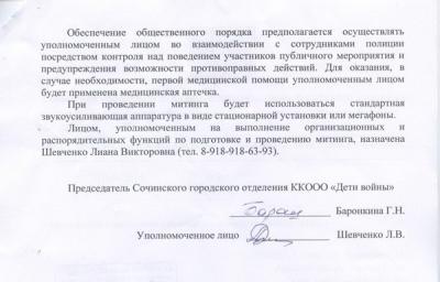 Сочинское отделение Всероссийской Общественной организации «Дети войны», насчитывающее более 7 тысяч членов, намеревалось провести митинг 22 июня, главной целью которого является сохранения исторической памяти о вкладе Советского Союза, его народов и «детей войны» в победу над фашизмом. Но администрация отказала ветеранам в проведении митинга.