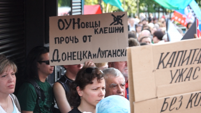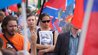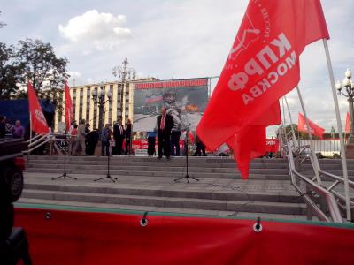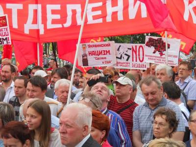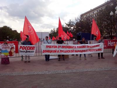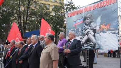 В четверг, третьего июля в Новопушкинском сквере столицы состоялся митинг в поддержку жителей Донецкой и Луганской народных республик. Под красными флагами собрались сотни коммунистов и комсомольцев, сочувствующих и просто неравнодушных граждан.