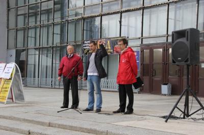 Далее выступил секретарь Коми Рескома КПРФ, зам. Председателя Совета Сыктывкара О.А. Михайлов. Он призвал всех принять участие в борьбе с фашизмом, помогать, кто чем может, и быть с людьми, которым нужна помощь. Также он отметил, что весь империалистический мир на стороне киевских карателей. Воюют и страдают жители Украины, но дипломатическую и идеологическую поддержку им оказывают США, страны НАТО и Евросоюза. Олег Алексеевич также не оставил без внимания левое движение, которое консолидировалось во всем мире и активно поддерживает жителей юго-востока Украины.