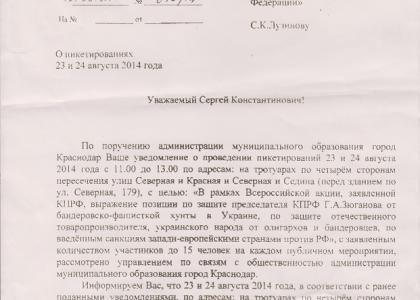 И сколько можно под надуманными предлогами мешать политическим активистам партии донести до населения свою политическую позицию, поддержать наших единокровных братьев в Луганске и Донецке? Сколько можно под различными предлогами пытаться наши протестные мероприятия вывести в городское захолустье, где практически не ходят люди и где наше мнение не может быть услышано гражданами Краснодара?