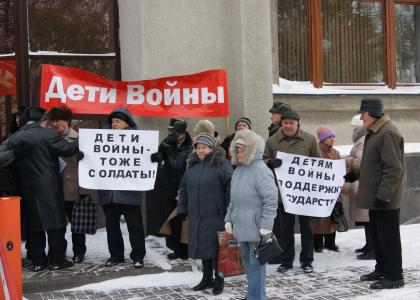 В пикете приняли участие 60 человек. Пикетирующие держали плакаты: "Дети войны - тоже солдаты", "Детям войны - поддержку государства".