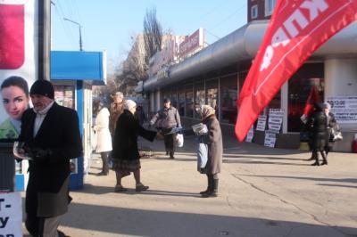 Активисты горкома и Волжского райкома КПРФ, несмотря на мороз, вышли на улицу с требованием обеспечить «детям войны» государственную заботу и внимание, остановить регулярный рост цен на коммунальные услуги и обратить на эти злободневные проблемы внимание чиновников, а также призвать горожан на борьбу с постоянным увеличением тарифов и беспределом в сфере ЖКХ.
