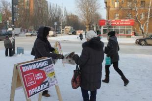 На пикетах коммунисты поставили стенды с плакатами "Внимание! Здесь точка правды!"