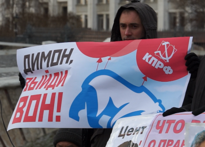 Участники акции согласились с Валерием Федоровичем и, стуча в кастрюли, которые принесли с собой, стали громко скандировать: «Медведев, уходи!».