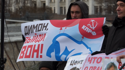Участники акции согласились с Валерием Федоровичем и, стуча в кастрюли, которые принесли с собой, стали громко скандировать: «Медведев, уходи!».