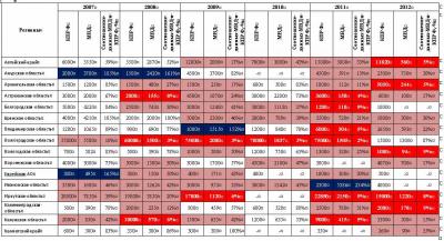 - от 2-х кратного до 3-х кратного: Астраханская область, Владимирская область, Вологодская область, Воронежская область, Краснодарский край, Липецкая область, Оренбургская область, Пензенская область, Приморский край, Псковская область, Республика Алтай, Республика Бурятия, Республика Кабардино-Балкария, Республика Хакасия, Смоленская область, Ставропольский край, Тамбовская область, Ханты-Мансийский АО, Челябинская область, Ямало-Ненецкий АО, Ярославская область;