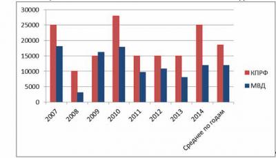 Итак, проанализирует официальные данные МВД РФ и КПРФ.