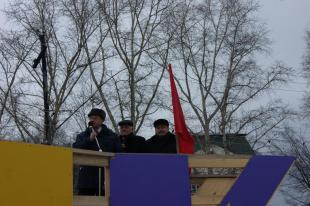 В своём выступлении секретарь Кировского горкома КПРФ Алексей Вотинцев говорил о том, что только коммунисты в настоящее время представляют интересы народа, призвал всех участников митинга вступать в ряды Компартии.