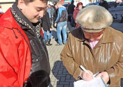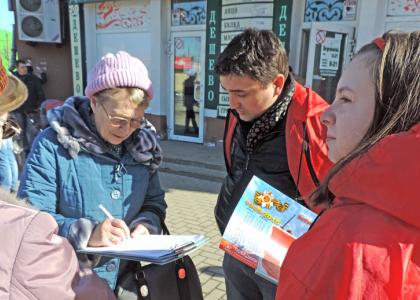 На этот раз пикет проходил в местечке, называемой народом «Станционная», где, стоит отметить, люди очень охотно подходили к красной палатке КПРФ, установленной комсомольцами, и охотно брали предлагаемый материал, а также ставили свои подписи в поддержку законопроекта.
