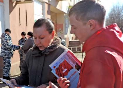 Участники пикета раздавали всем желающим гражданам спецвыпуск газеты «Правда», брошюру «Победа и Сталин», календари Ивановского обкома КПРФ, а также листовку «Защитим Знамя Победы».