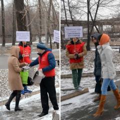 Раздавая партийные газеты, участники акции также держали