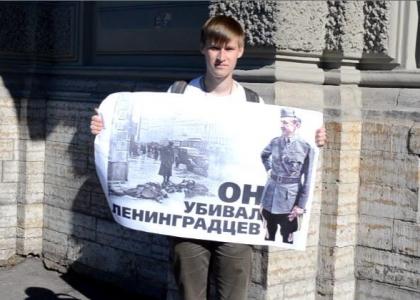 17 июня 2015 года ленинградские комсомольцы провели одиночный пикет у здания бывшего Генерального штаба, протестуя против увековечивания в нашем городе пособника Гитлера.