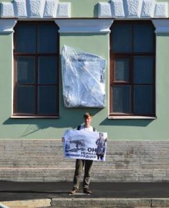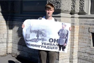 17 июня 2015 года ленинградские комсомольцы провели одиночный пикет у здания бывшего Генерального штаба, протестуя против увековечивания в нашем городе пособника Гитлера.