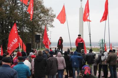 Первый секретарь Самарского обкома ЛКСМ Наталья Дорохова: «Товарищи, через 2 дня мы будем отмечать 97-годовщину создания Ленинского комсомола. Комсомол и Тольятти тесно связаны. Могли ли подумать, те комсомольцы, строившие Тольятти, что их труд будет принадлежать частным лицам, а простых рабочих будут выгонять на улицу. Капитализм не кормит - капитализм пожирает! Власть видит угрозу в достижениях социализма - в бесплатной медицине и образовании, в достойном уровне жизни рабочих людей! И только одно может спасти простого рабочего человека - это переход на социалистические рельсы. Выход из кризиса – социализм!».
