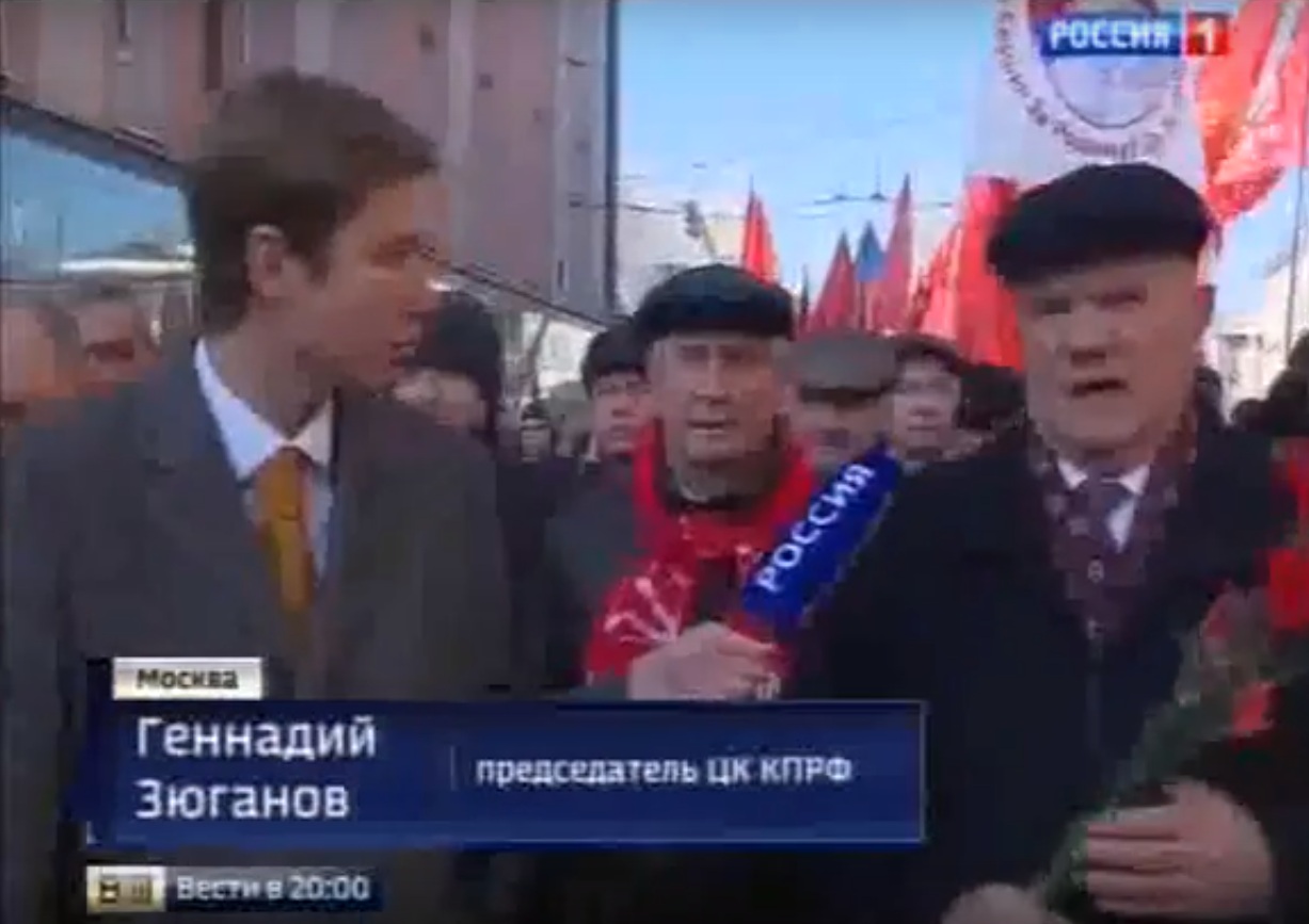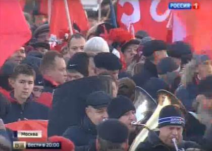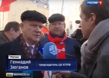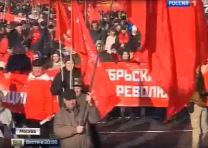Телеканал «Россия 1» в программе «Вести» показал сюжет о праздничной демонстрации КПРФ посвященной дню Великой Октябрьской Социалистической революции, 7 ноября 2015 года.
